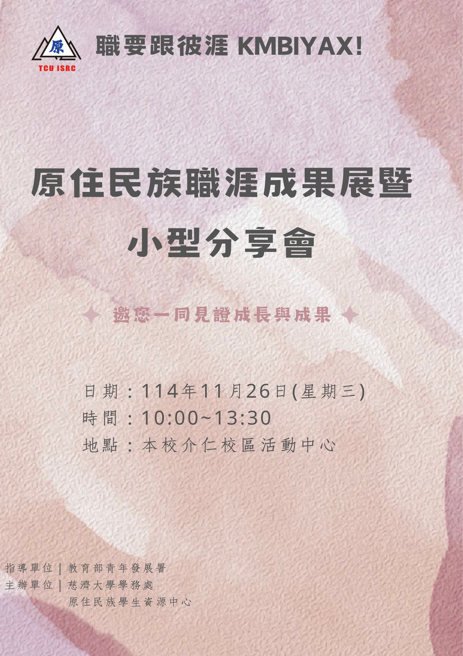 【公告】慈濟大學原住民族職涯成果展暨小型分享會